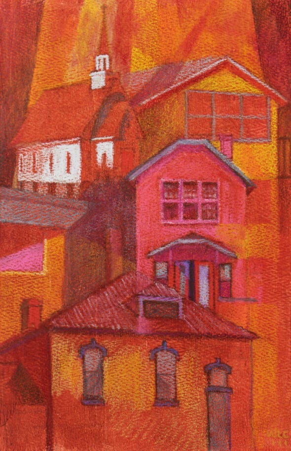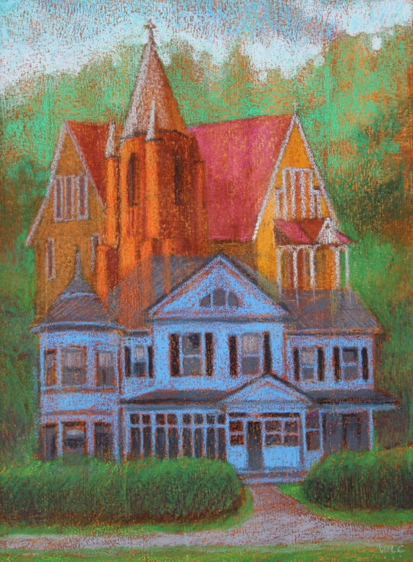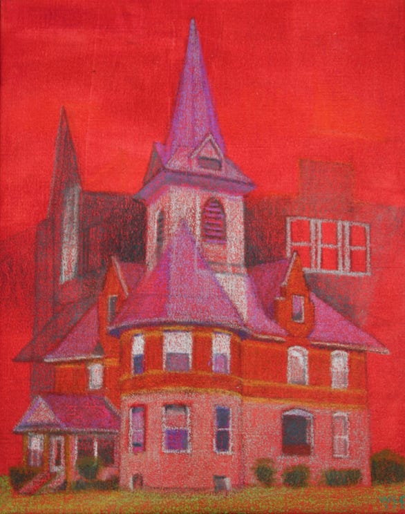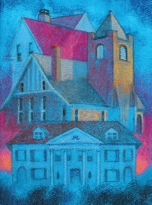 The buildings these images reference came from images that my dad took of houses he thought I would be interested in. He saw them on his retirement trip around the perimeter of the country with my mom.