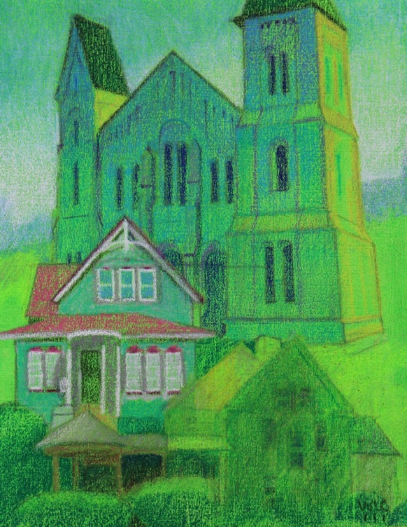 I am pairing and coupling buildings, referencing the beauty and complexity of familial, communal, and religious relationships.